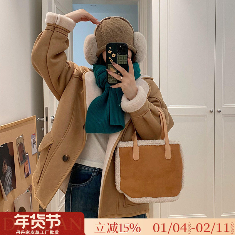 - 鹿皮羊羔毛外套