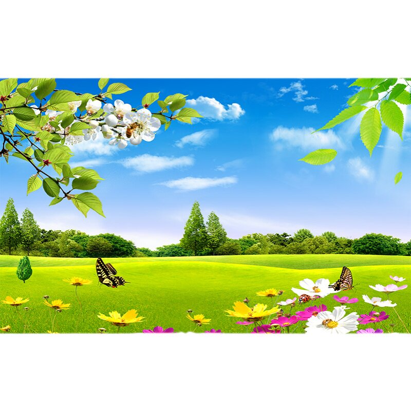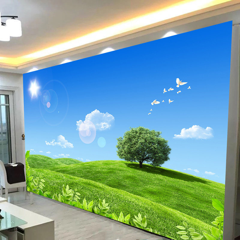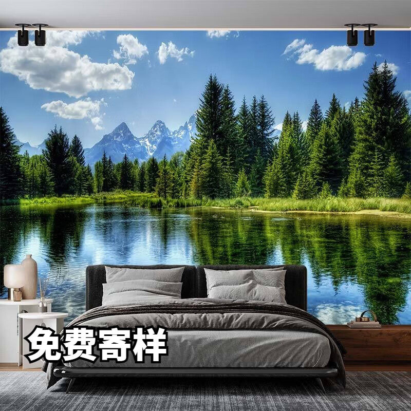 大自然山水森林3d简约电视背景墙布定制墙纸房间壁画卧室田园客厅