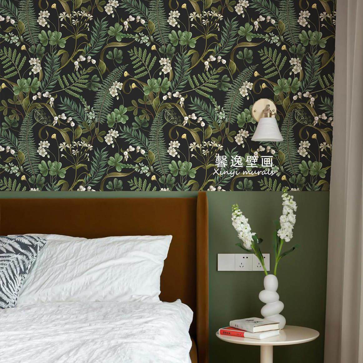 蕨类植物复古热带花卉森林壁纸卧室床头客厅沙发餐厅背景墙纸墙布