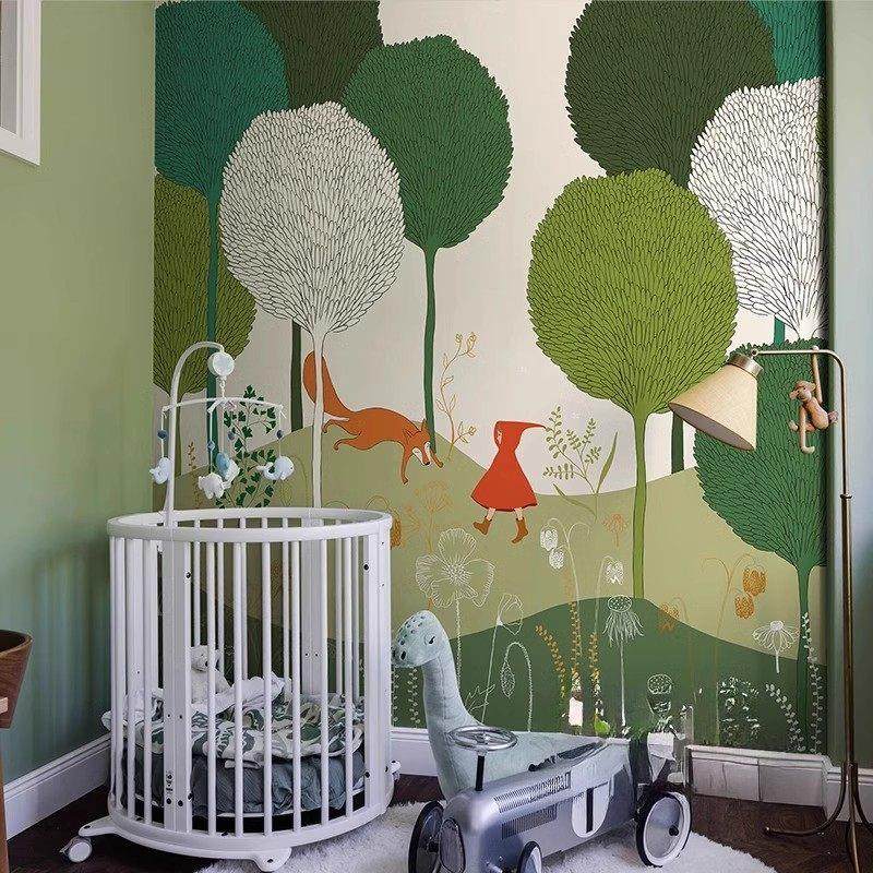 儿童房墙布绿野森林壁纸定制壁画北欧创意卧室床头背景墙艺术壁纸