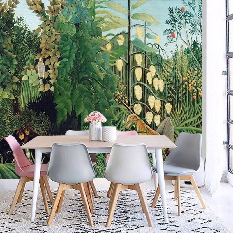 美式复古森林壁纸法式热带雨林卧室餐厅酒吧丛林墙布灭绝动物墙纸