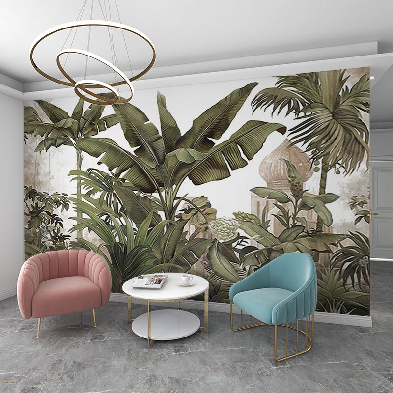 东南亚风格森林墙纸热带雨林芭蕉叶植物壁画客厅沙发电视背景壁纸