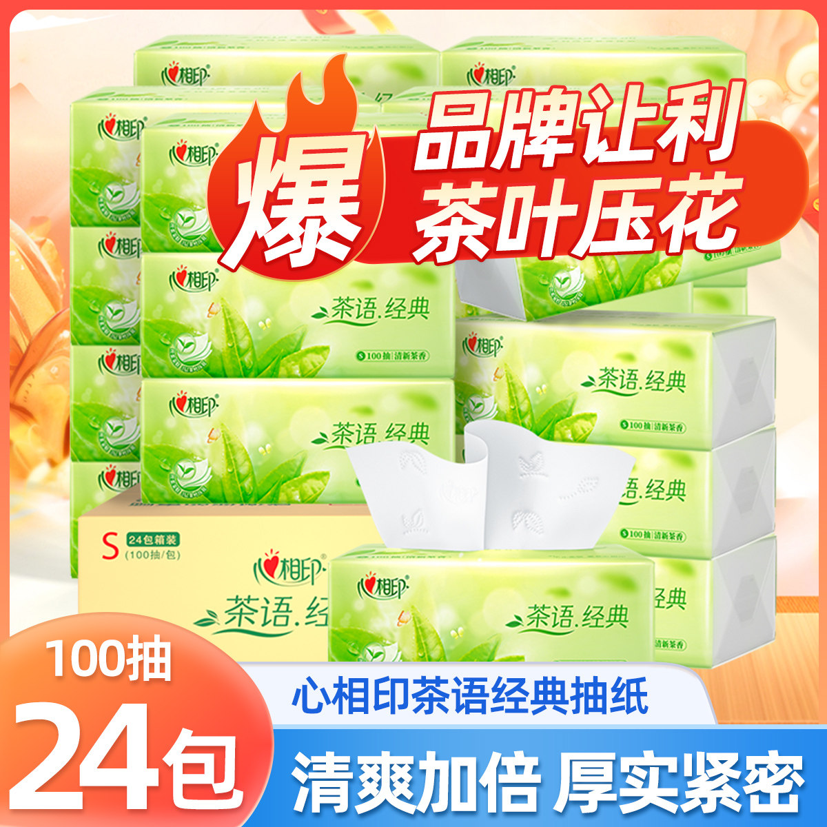 心相印抽纸茶语100抽面巾纸家用卫生纸餐巾纸批发整箱3层加大加厚