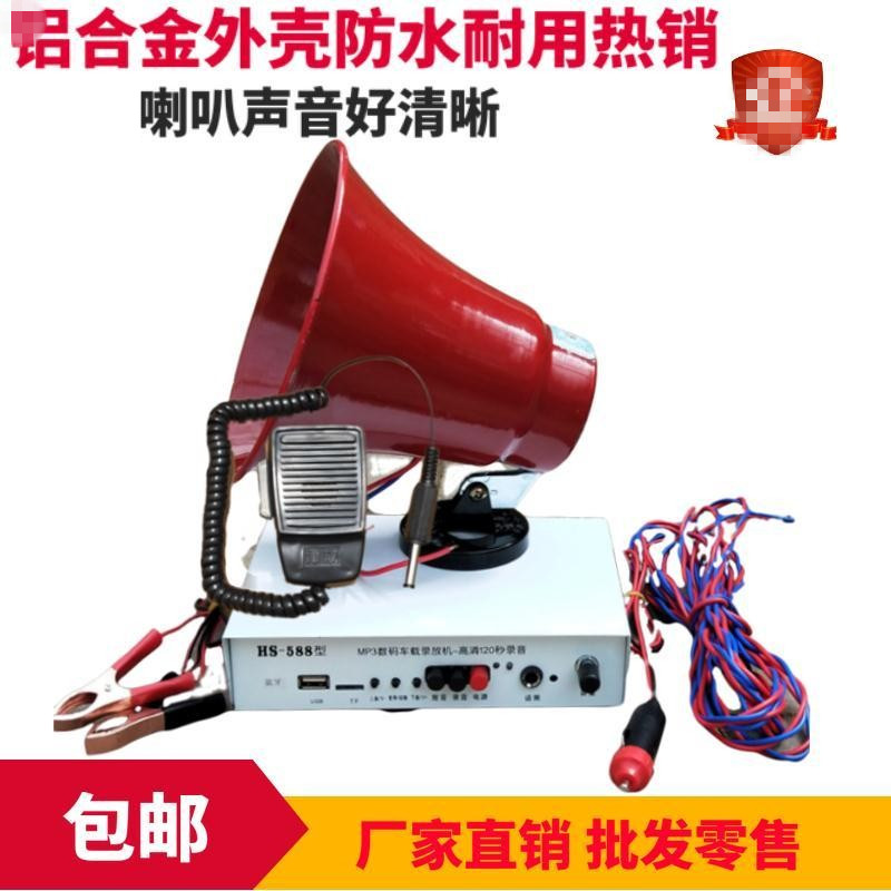 12V车载扩音器大功率录音广告宣传高音铝喇叭24V叫卖蓝牙功放主机