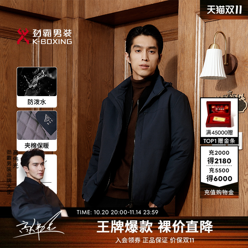 【可拆卸鹅绒内胆】劲霸男装秋冬男士轻薄羽绒服翻领行政夹克外套