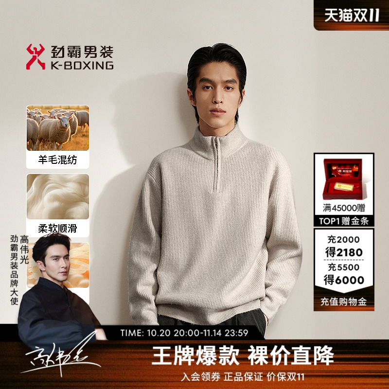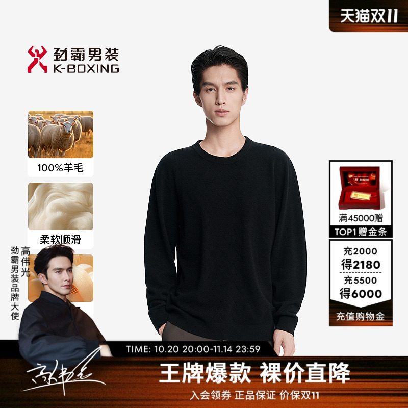 【100%羊毛】劲霸男装男士针织衫秋冬时尚毛衣圆领套头羊毛衫