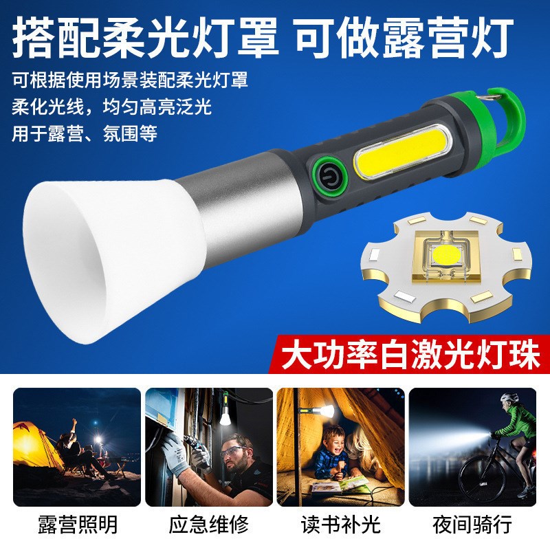 户外强光充电手电筒激光远射手电随身手电筒亮野营迷你便携露营灯