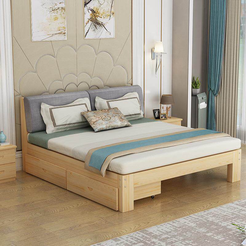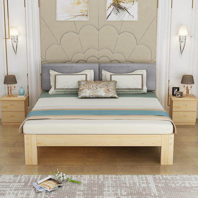 实木床现代简约1.8双人床经济型1.5米软包单人床架出租房松木1.2m