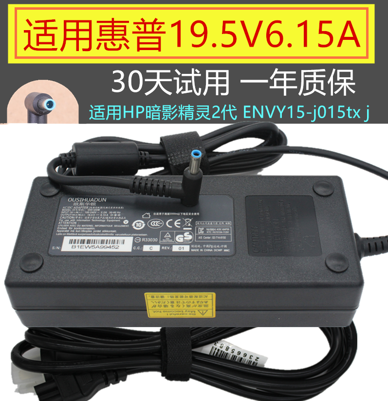 惠普19.5V6.15A电源适配器ENVY15 暗影精灵2代充电器120W蓝口带针