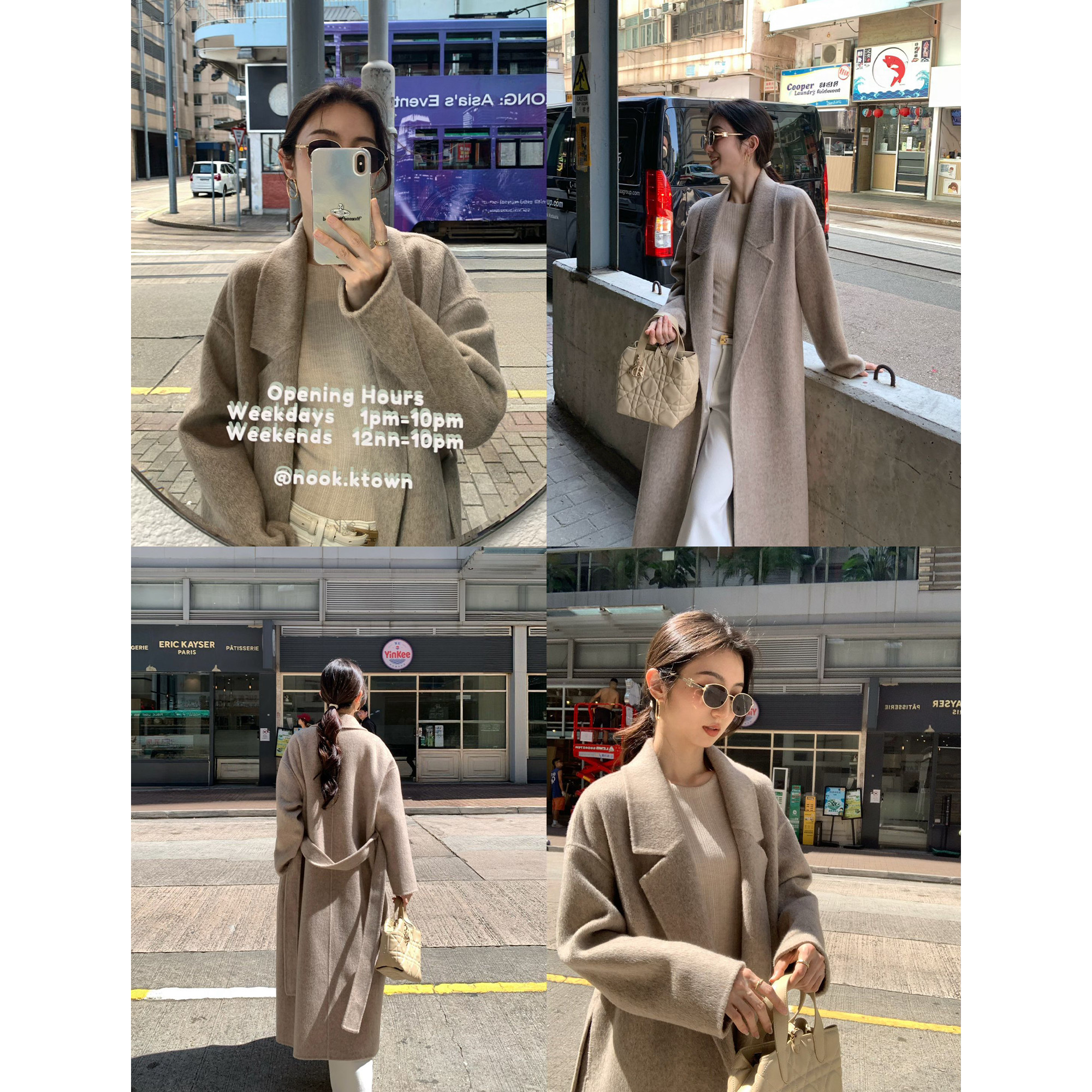 【甜甜粉丝专享】秋冬羊毛大衣女长款西装领系带毛呢外套2501-A