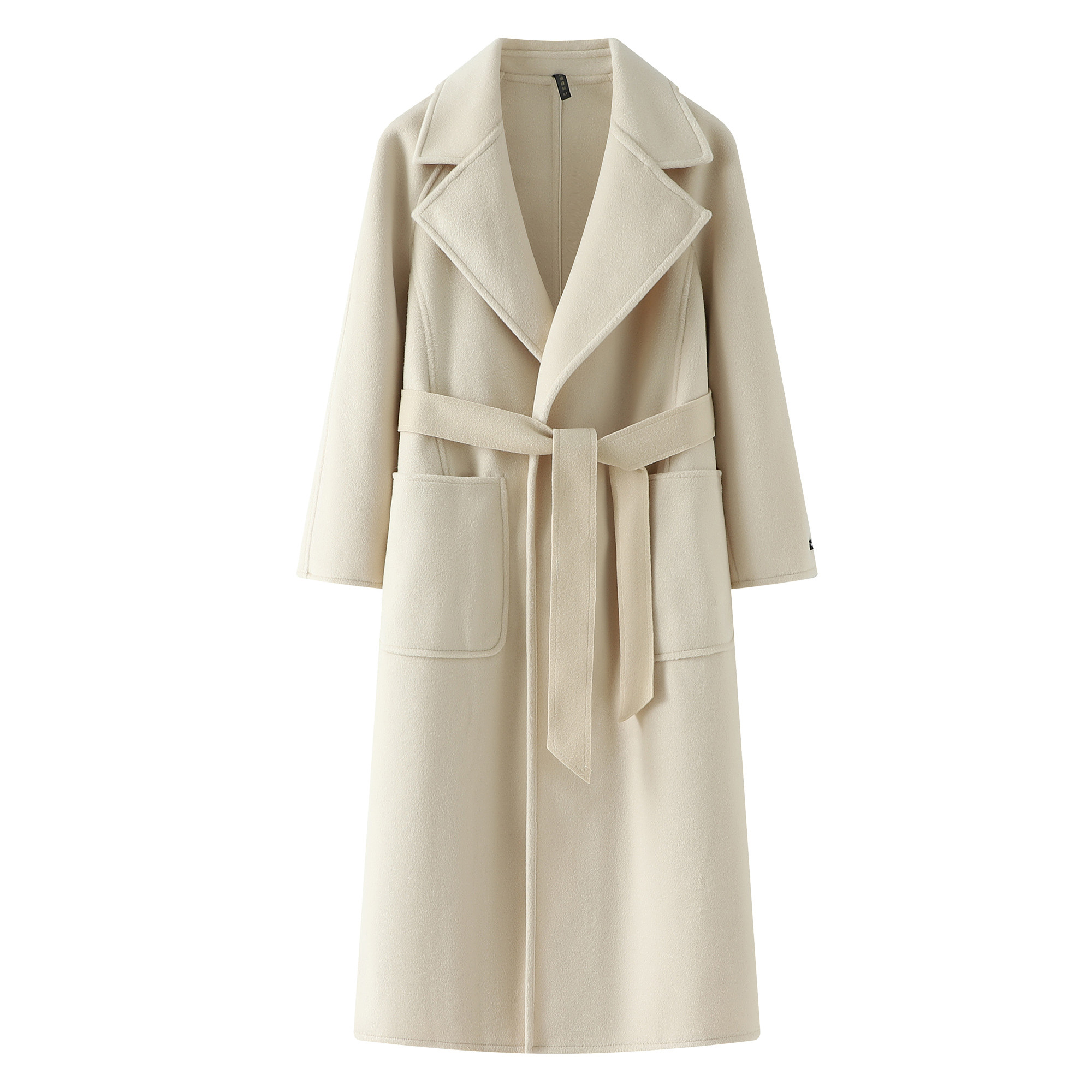 冬季新款重磅驼绒轻盈保暖简约系带大翻领羊毛双面毛呢大衣外套女
