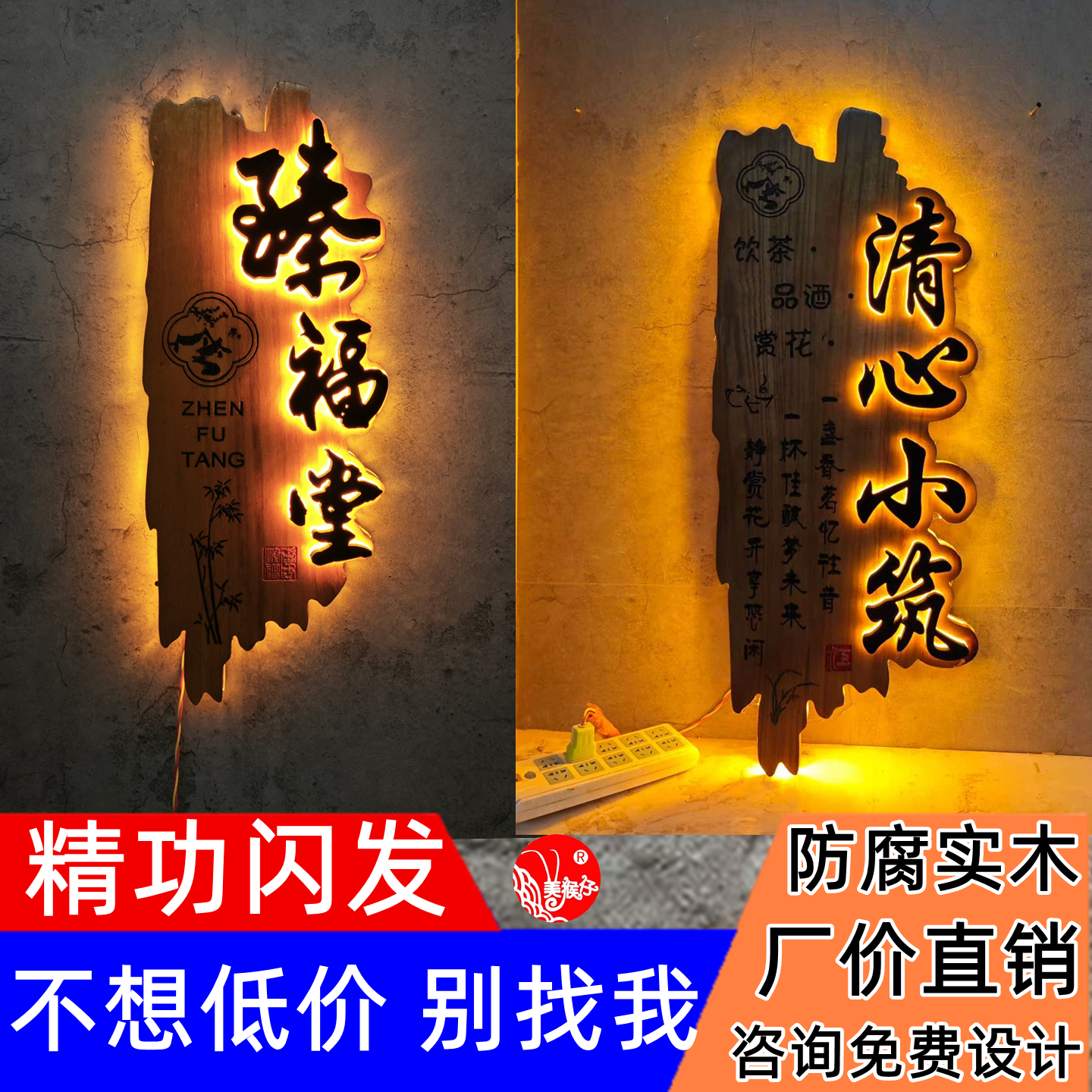 发光实木牌匾定制复古木质广告牌仿古农家乐民宿酒馆茶室门头招牌