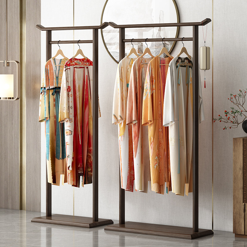 可移动挂衣架实木落地卧室新中式衣帽架旗袍简约现代民宿置物衣架