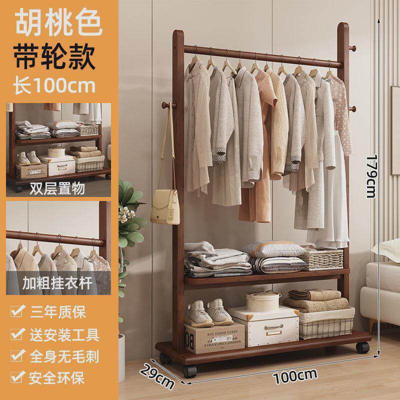 2025新款挂衣架实木落地挂衣架可移动卧室置物架小型家用衣帽架子