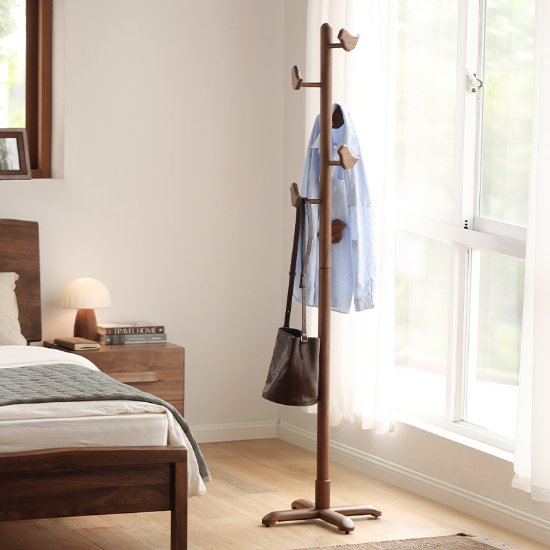 北美黑胡桃木挂衣架实木落地衣帽架卧室家用挂衣杆置物架2026新款