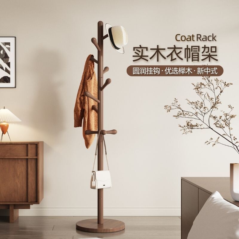 高品质挂衣架实木落地衣帽架新中式家用卧室客厅木质加粗挂衣服架