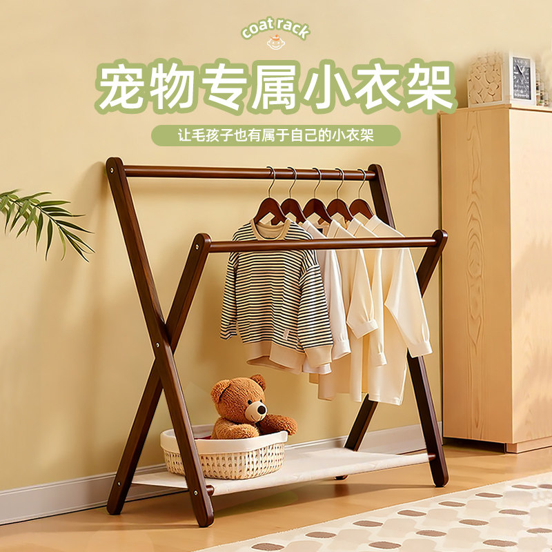 宠物狗狗衣架实木落地衣柜猫咪衣橱小狗衣帽架卧室小型衣服收纳架