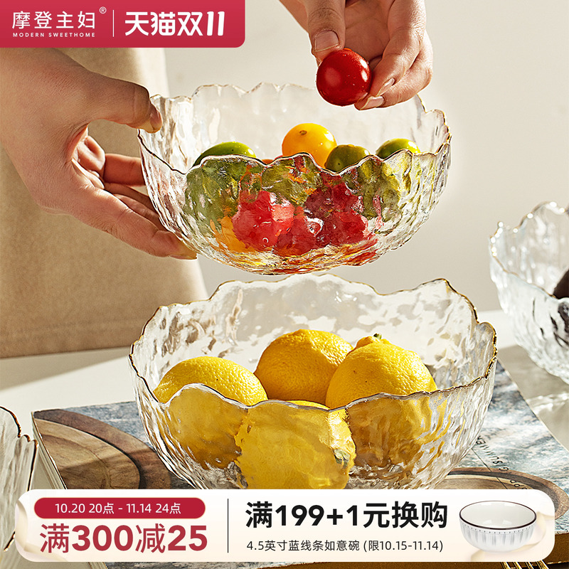 摩登主妇玻璃水果盘客厅茶几家用沙拉碗高端精致高颜值水果碗盘子