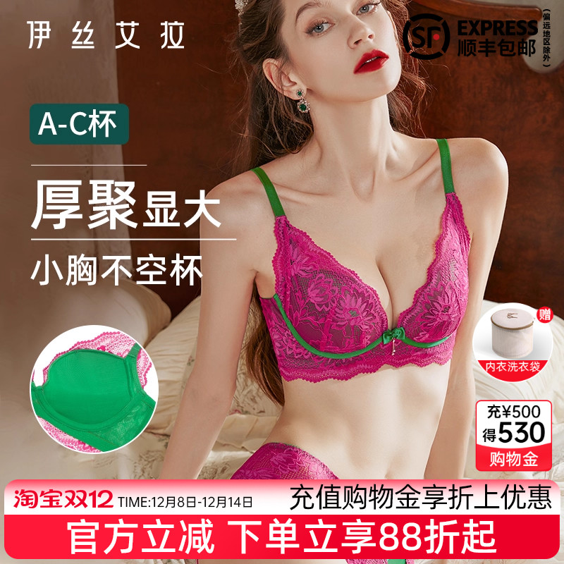 伊丝艾拉聚拢内衣女小胸显大加厚收副乳防下垂蕾丝性感无钢圈文胸