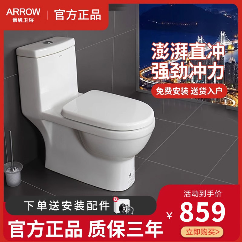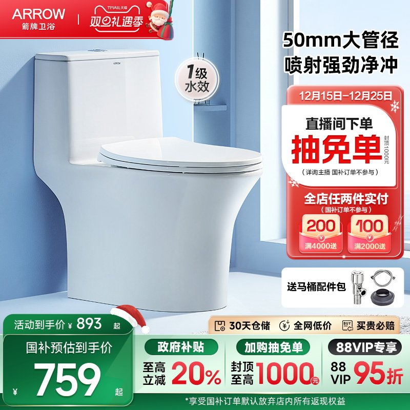 【直播闪降立减】箭牌小户型大冲力极速排污节水静音喷射虹吸马桶