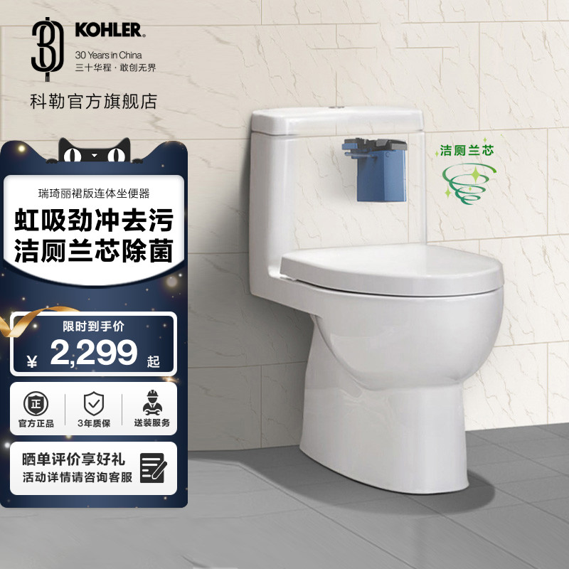 科勒马桶瑞琦家用卫生间连体式坐便器超漩式节水双冲静音缓降3983