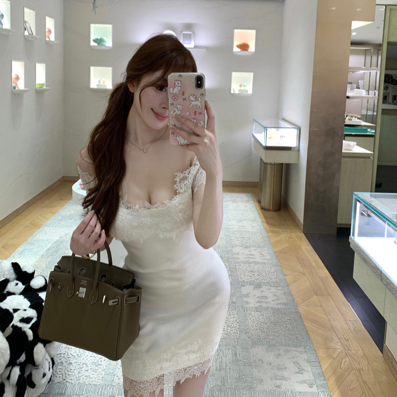 项天鹅er 蕾丝吊带连衣裙女2025冬季新款名媛包臀裙气质抹胸裙子