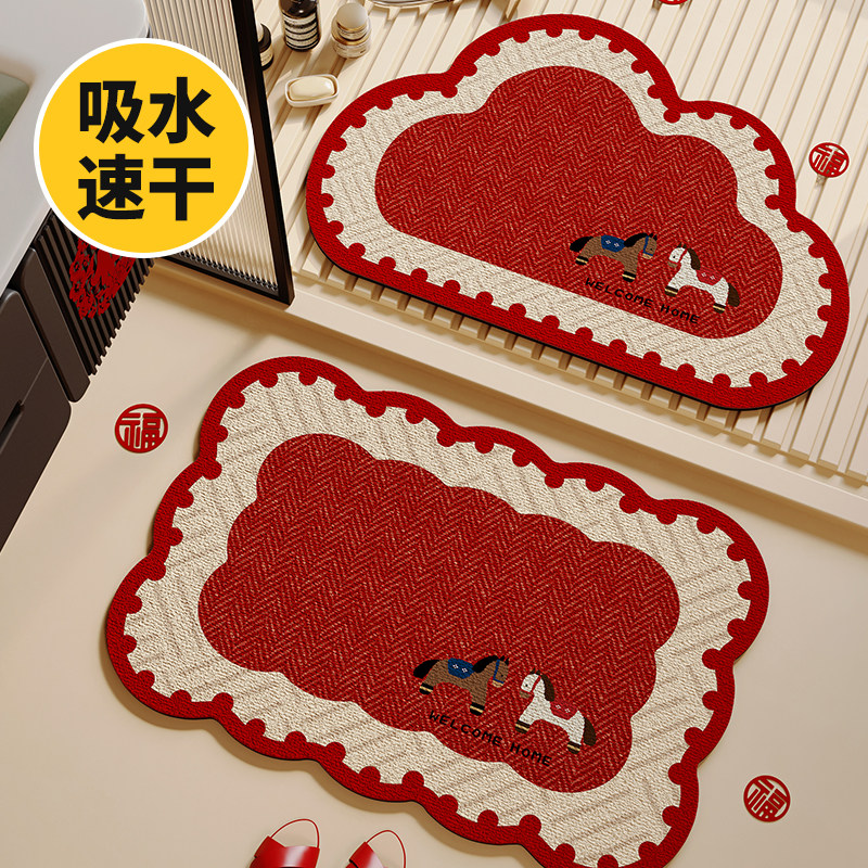 2026新款卫生间地垫吸水防滑垫新年马年浴室洗手间门口硅藻泥脚垫