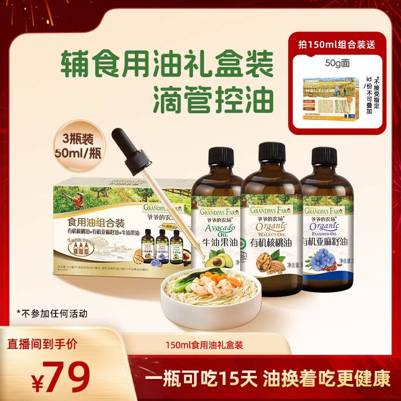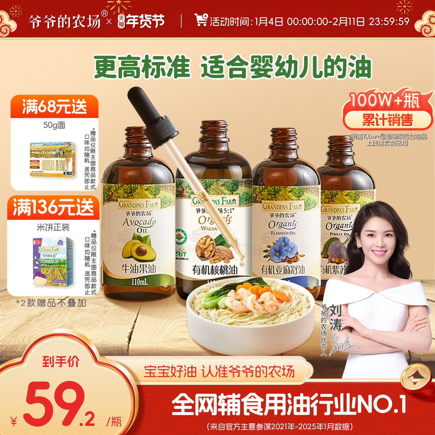 爷爷的农场宝宝热炒辅食用油核桃油亚麻籽牛油果油,送婴幼儿食谱