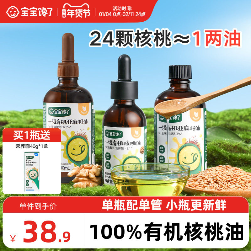 宝宝馋了有机核桃油热炒油亚麻籽辅食食用油送宝宝婴幼儿童辅食谱