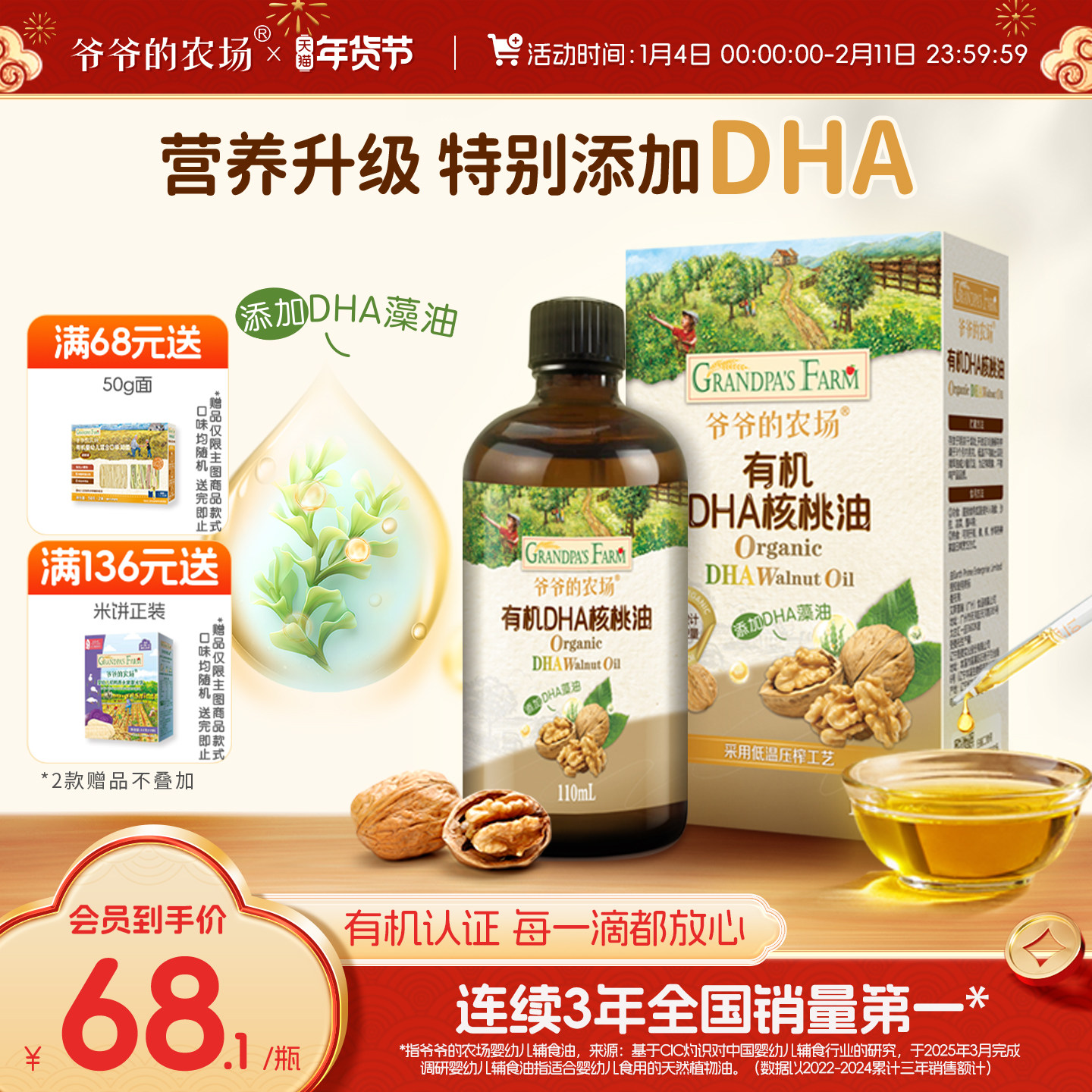 爷爷的农场冷拌热炒婴标亚麻籽油有机核桃油宝宝辅食油婴幼儿标准