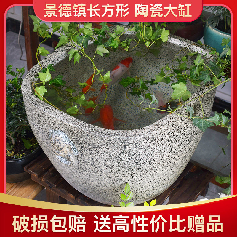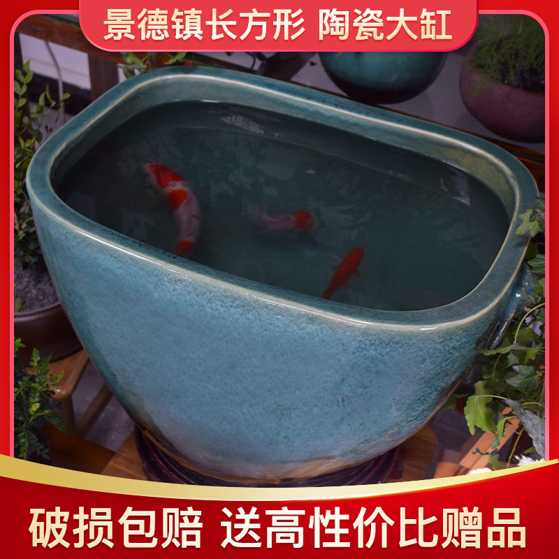 陶瓷摆件家用大中号长方形水缸客厅时尚简约养鱼盆复古鱼缸风水缸