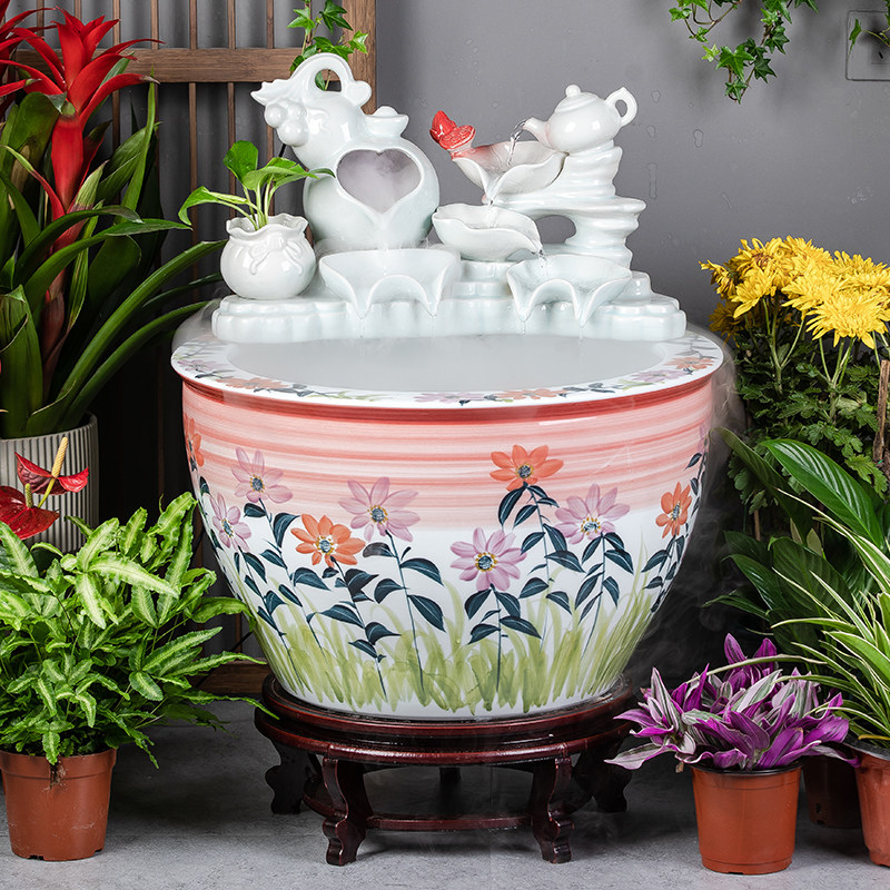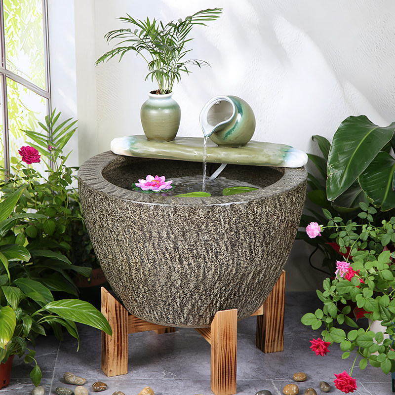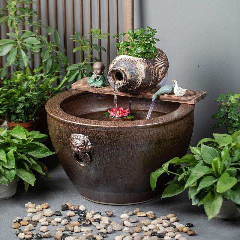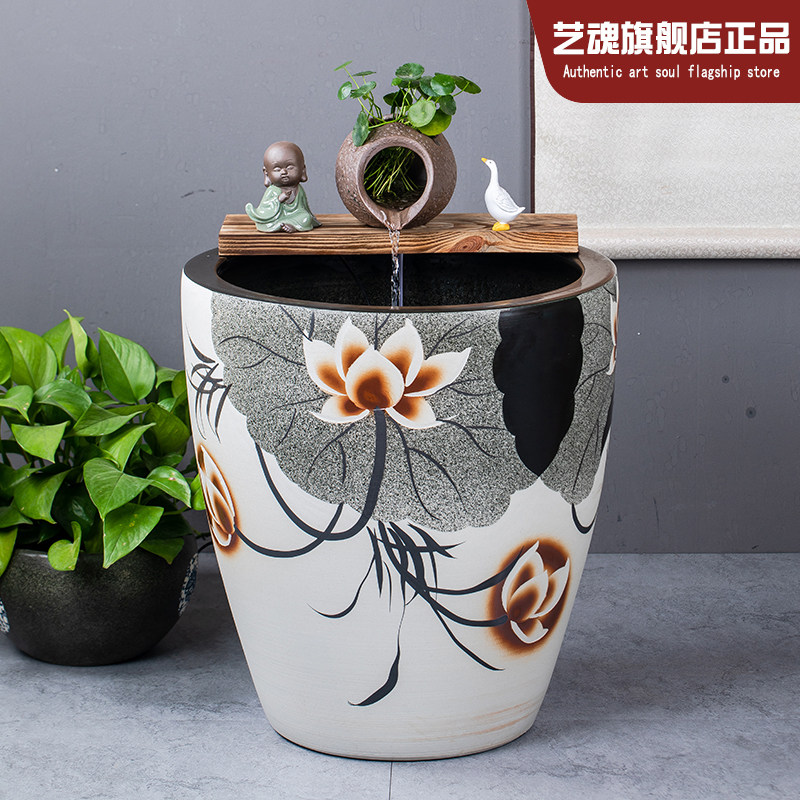 循环流水喷泉过滤陶瓷古法养鱼缸落地水缸公司风水盆客厅增氧摆件