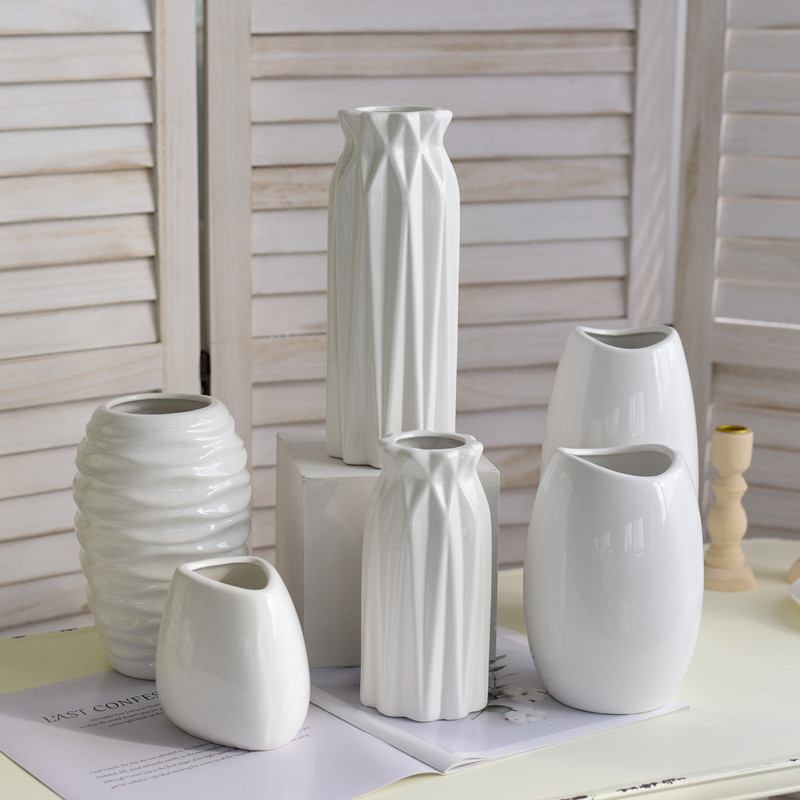 现代简约白色陶瓷小花瓶北欧客厅水养干花插花餐桌水培装饰品摆件
