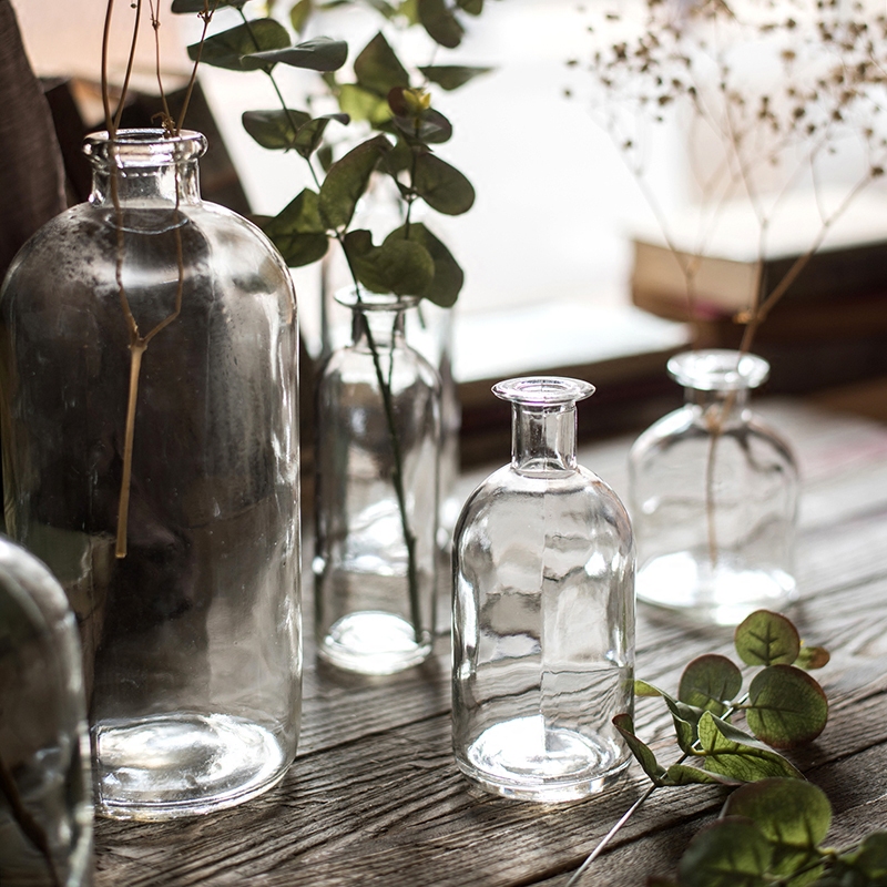 掬涵小口玻璃透明花器花插细口INS日式水培花瓶北欧水养装饰摆件