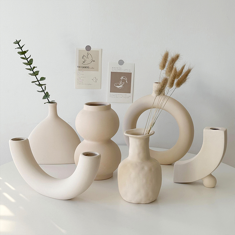 Homeside圆环花瓶北欧ins圆形素烧磨砂环形陶瓷花器民宿摆件