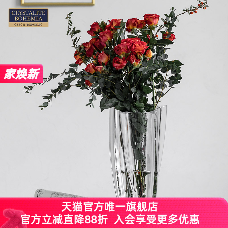 捷克进口 Bohemia水晶玻璃花瓶北欧轻奢风插花装饰品客厅摆件透明