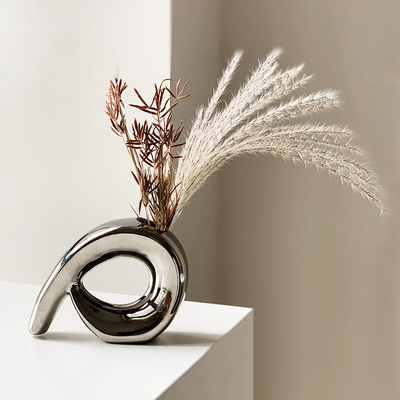 Homeside电镀花瓶北欧ins简约复古银色陶瓷桌面装饰艺术摆件花器