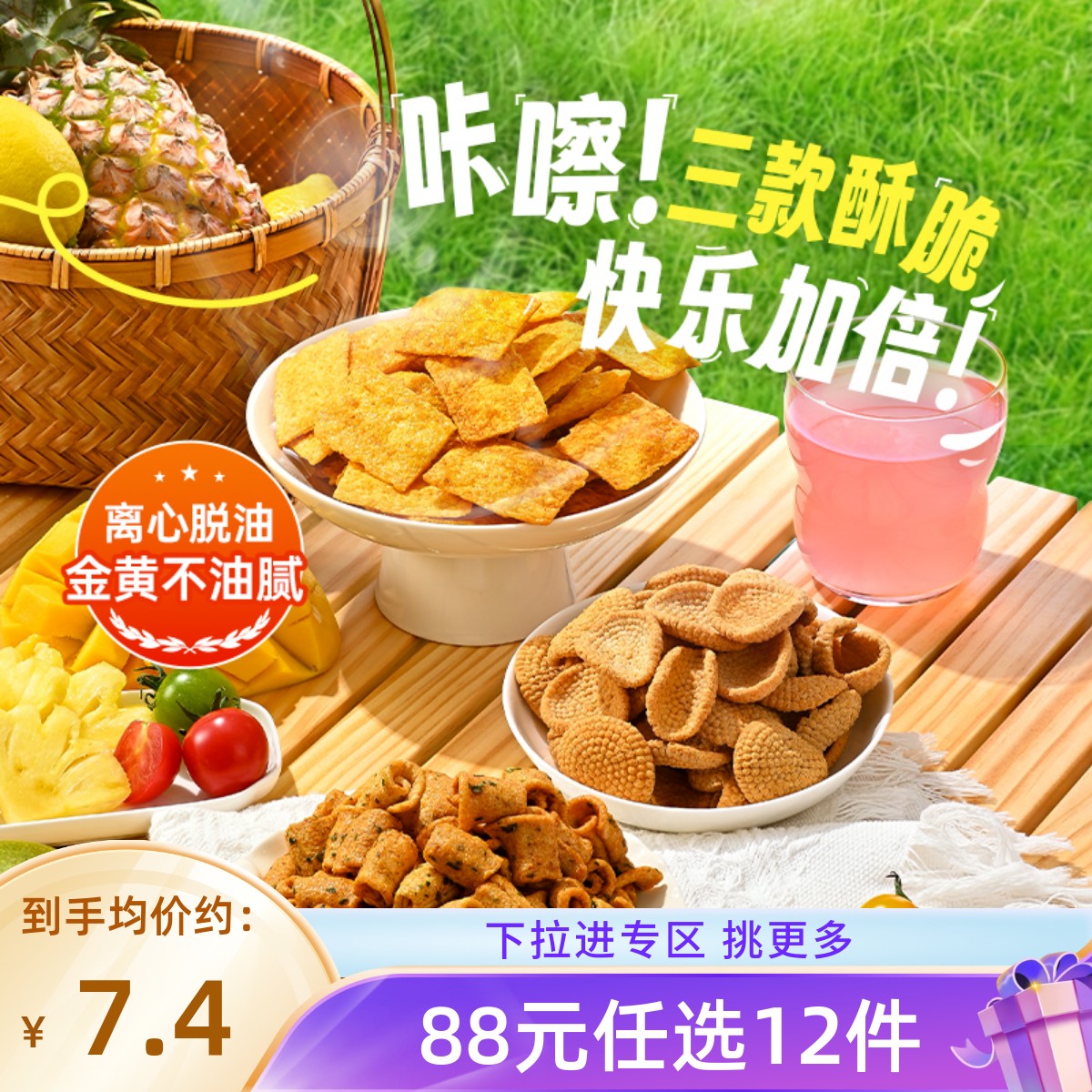 【88元任选12件】小米煎饼锅巴鹿角脆五谷穗片袋装网红零食传统