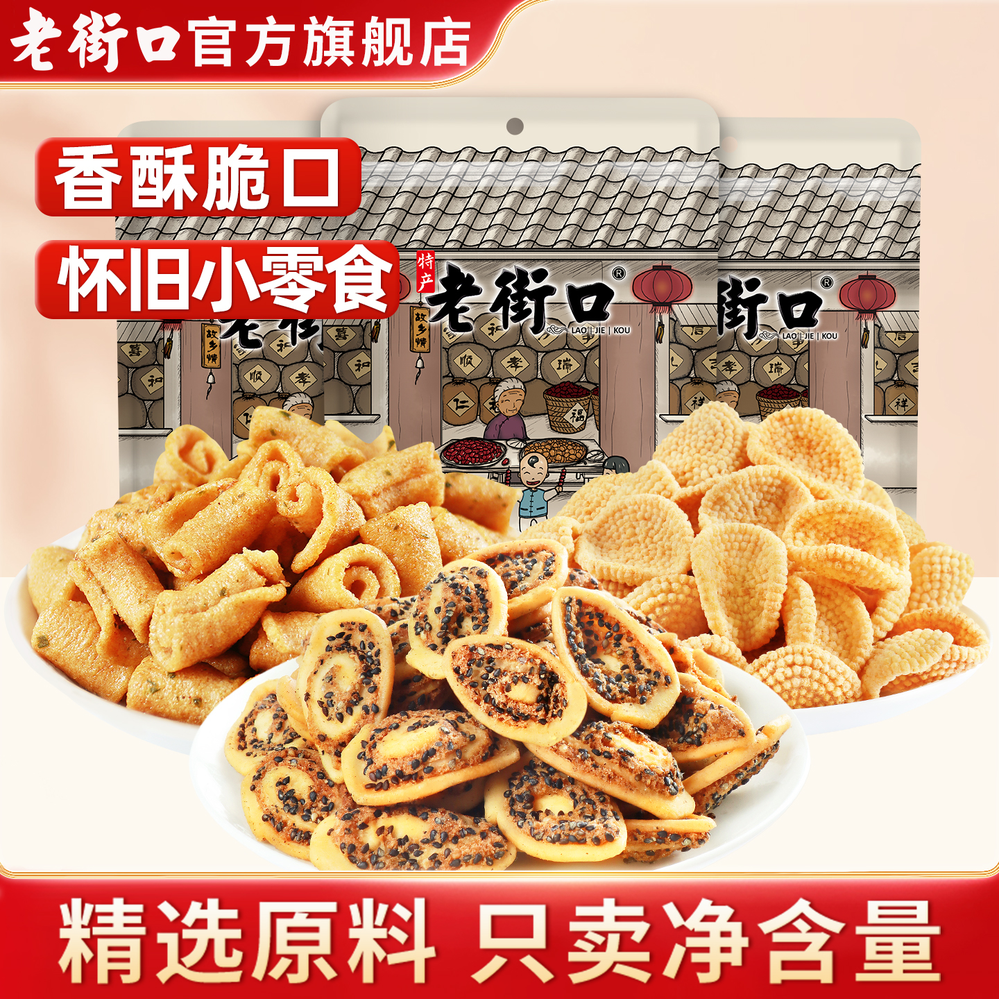 薛记炒货小米煎饼锅巴鹿角脆五谷穗片饼干膨化零食传统糕点官方店