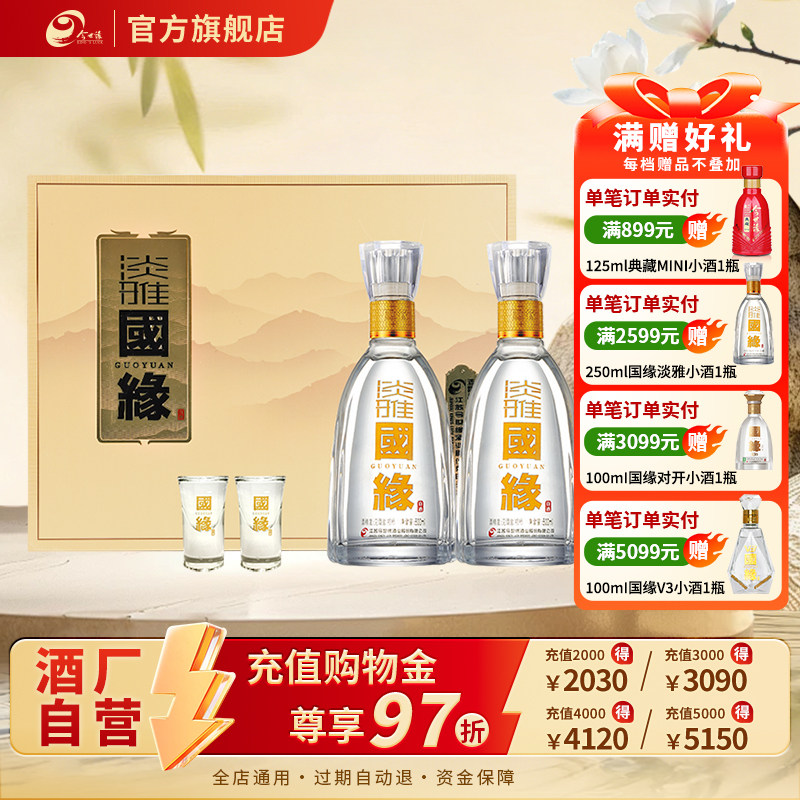 【酒厂自营】今世缘淡雅国缘礼盒42度500ml*2瓶纯粮白酒商务送礼