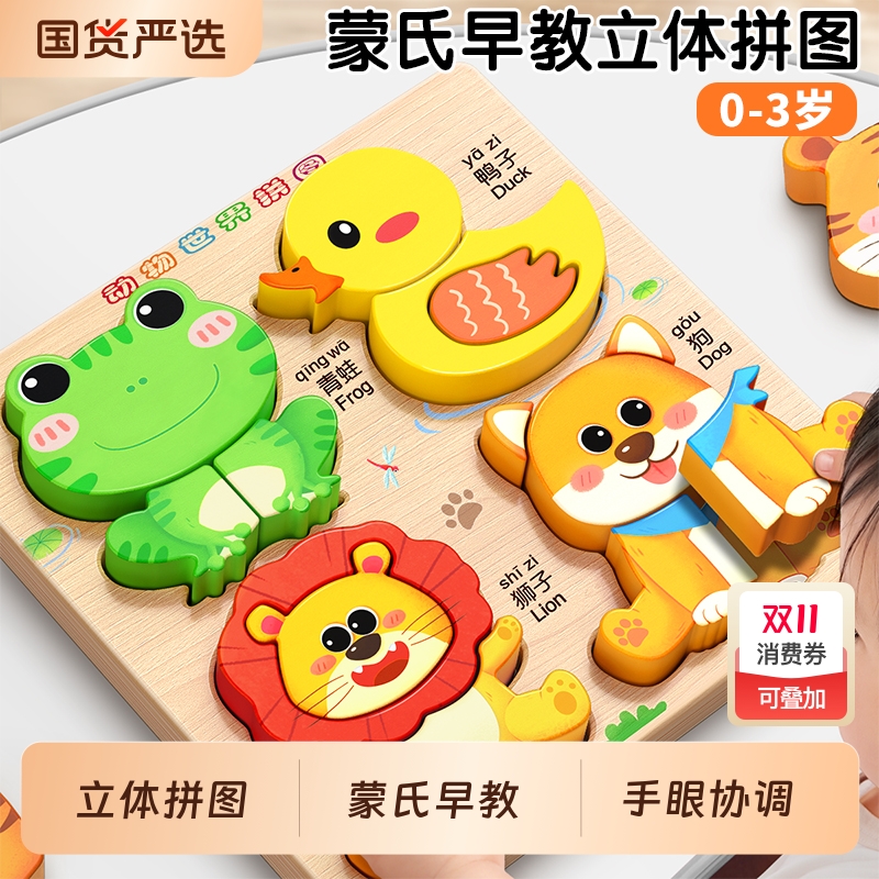 幼儿童立体拼图装板蒙氏早教益智配对积木宝宝1到2岁3男孩女6玩具