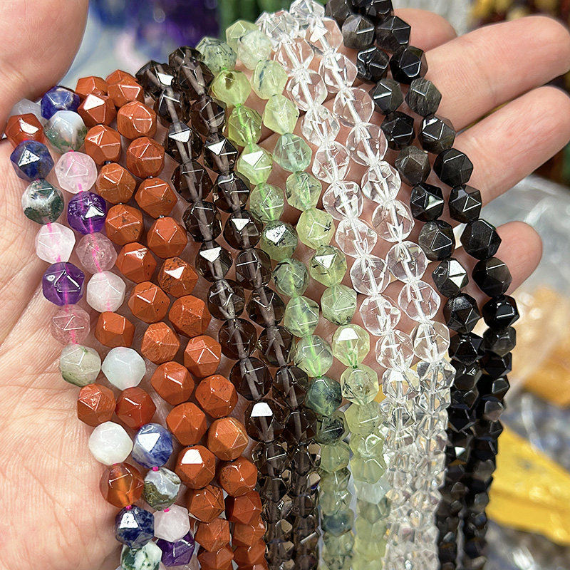 天然石水晶切面珠子 多宝银曜石葡萄石万切散珠 diy手链项链配件