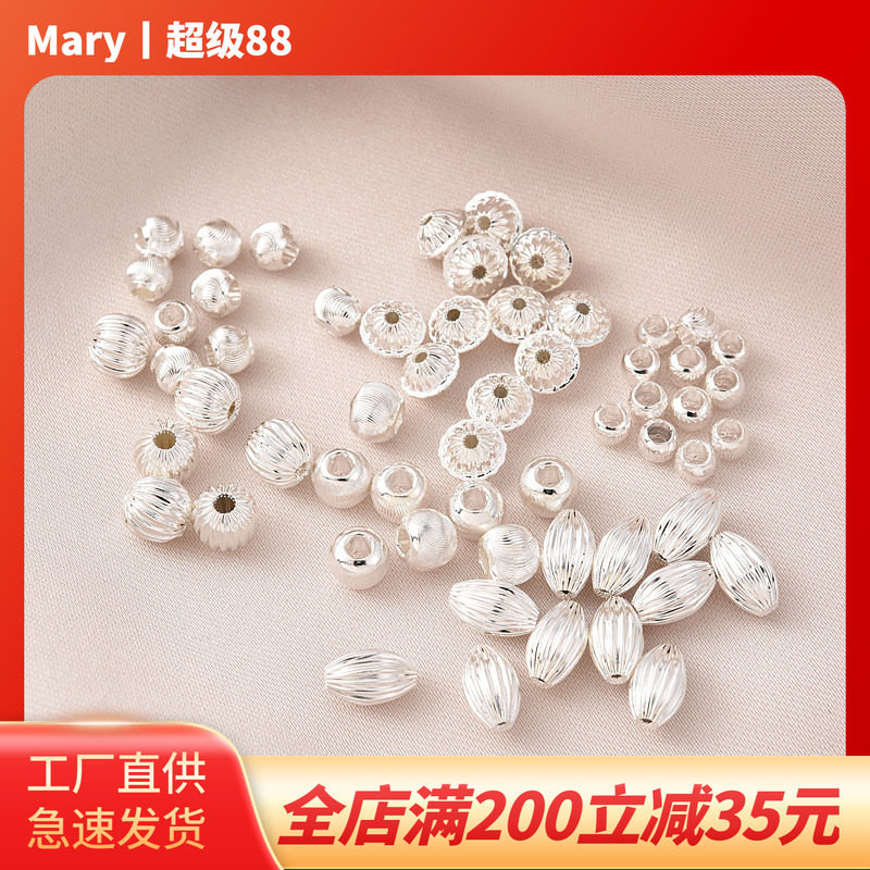 保色铜镀厚银空心南瓜珠手工diy手链猫眼隔珠橄榄珠散珠圆珠材料