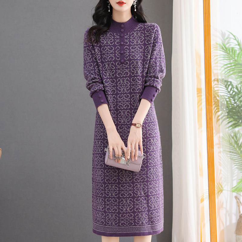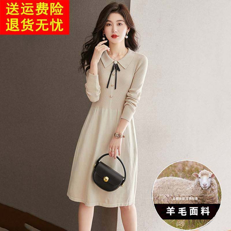 气质减龄羊毛裙中长款羊绒衫秋冬妈妈过膝打底针织连衣裙配大衣女