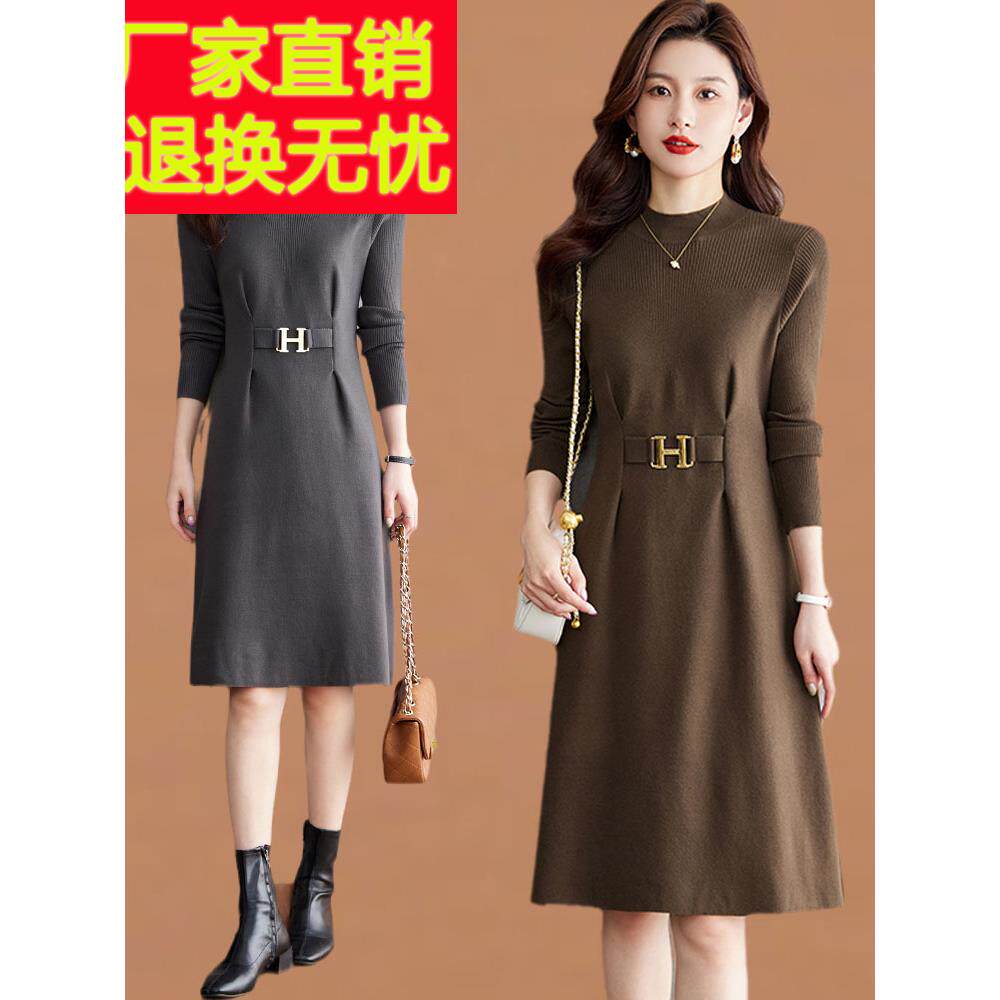 超好看针织连衣裙女秋冬配大衣收腰内搭中长款毛衣妈妈慵懒打底裙