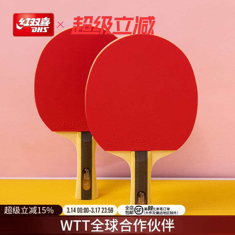 红双喜官方旗舰店 乒乓球拍三星级双拍3星儿童小学生成人初学者