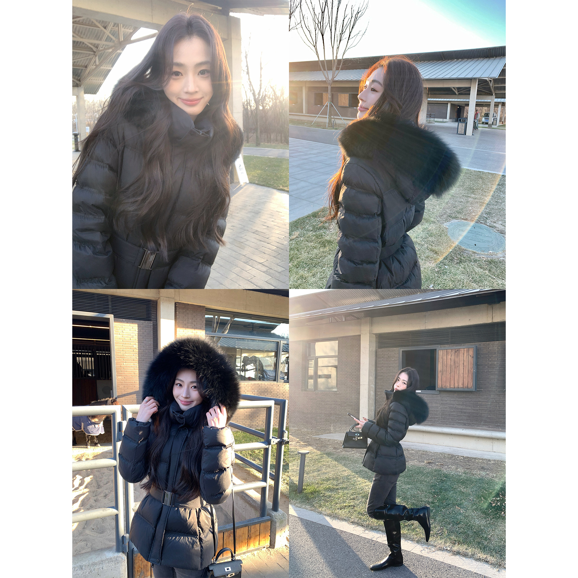 - 中长款带毛领羽绒服