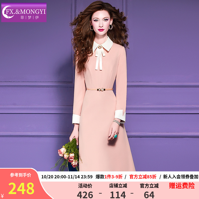 菲梦伊原创粉色衬衫连衣裙女长袖秋装小香风名媛优雅气质A字裙子