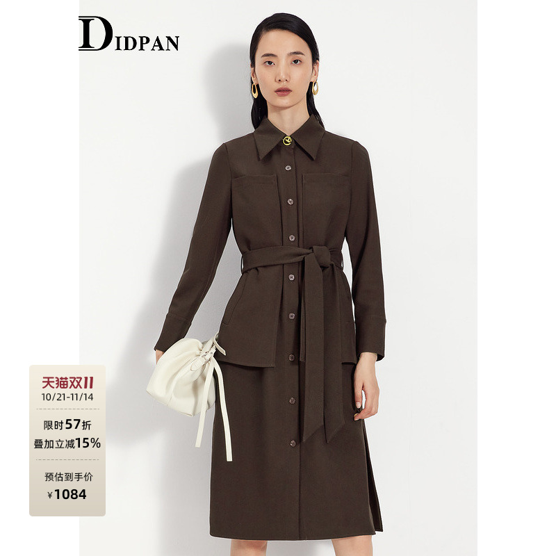 菲梦伊原创衬衫连衣裙女长袖秋装时尚通勤显瘦百搭气质中长款风衣