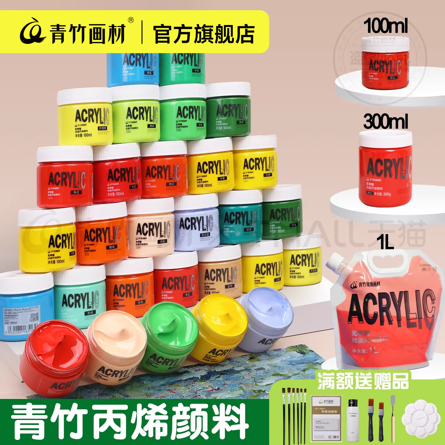 青竹丙烯颜料套装墙绘美术生专用无毒油画防水防晒不掉色白色金色手绘石膏娃娃涂色鞋石英砂肌理画青竹旗舰店